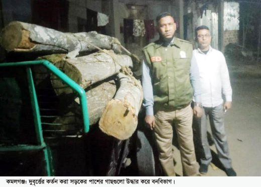 কমণগঞ্জ পৌর যুবদলের ভারপ্রাপ্ত আহ্বায়ক রুমন আলী বলেন, গত বৃহস্পতিবার গভীর রাতে গাছগুলো কেটে নেওয়া হয়। শুক্রবার সন্ধ্যায় বন বিভাগ উদ্ধার অভিযান চালালে আমি সহযোগিতা করি। ছোট-বড় মিলিয়ে প্রায় ২০ টুকরো গাছ উদ্ধার হয়েছে।